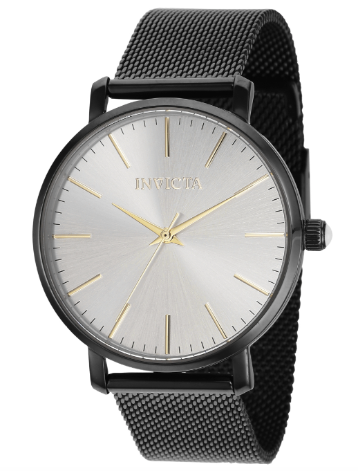 This beautiful Invicta Angel watch contains a precise Quartz movement in addition to a black case. Its face displays a silver, metal dial protected by a highly resistant Flame Fusion Crystal. This timepiece is completed by a black, band and it offers water resistance of up to 50 m.