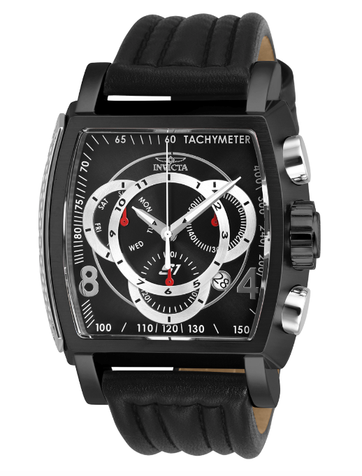 This incredible Invicta watch from the S1 Rally collection offers an exact Quartz movement, with an incredible black, steel case. The face displays a , metal dial protected by our proprietary Mineral Crystal. The design is completed by a black, leather band. This timepiece can resist water for up to 100 m.