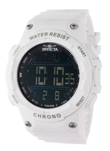 This Invicta Racing watch is powered by a Digital movement and held by a stunning white case. Its face displays a black dial covered by a highly resistant Mineral Crystal. This timepiece is completed by a white polyurethane band, and it offers water resistance of up to 100m.