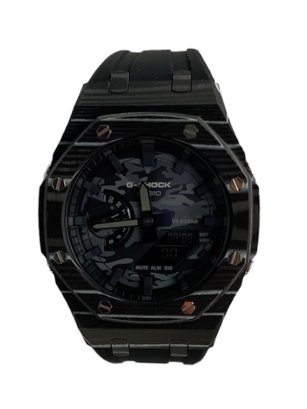 GShock Mod AP Style, Black and White Carbon Case w/ Black Band/ Camo