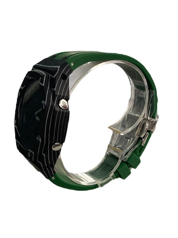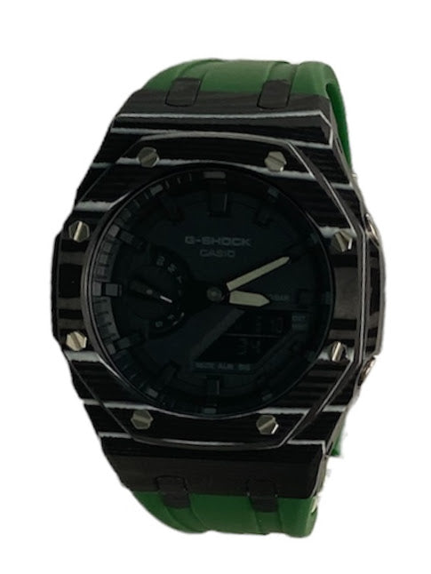 GShock Mod AP Style, Black and White Carbon Case w/ Green Band/ Black