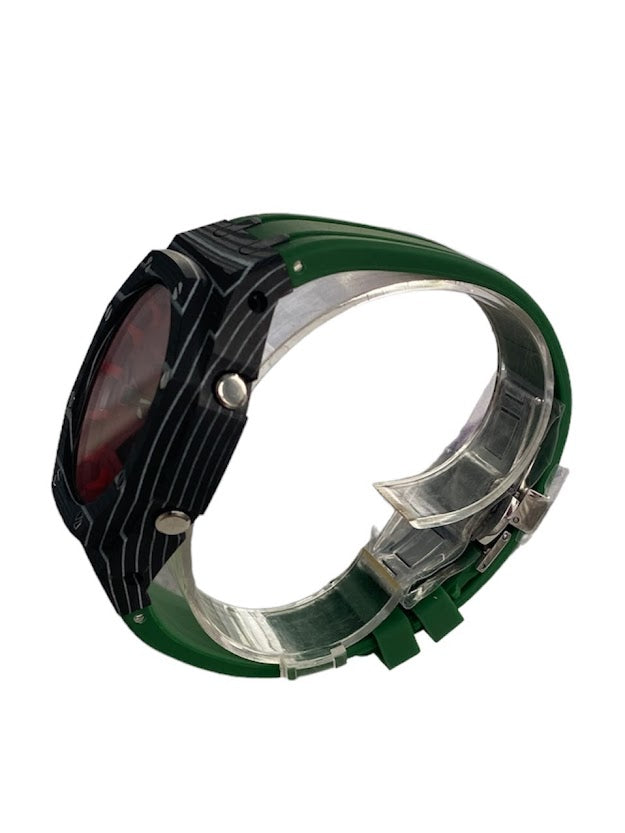 GShock Mod AP Style, Black and White Carbon Case w/ Green Band/ Red