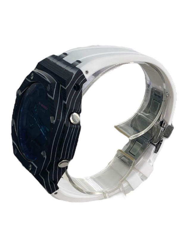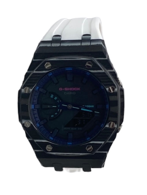 GShock Mod AP Style, Black and White Carbon Case w/ White Band/ Black w/Blue and Teal Markers