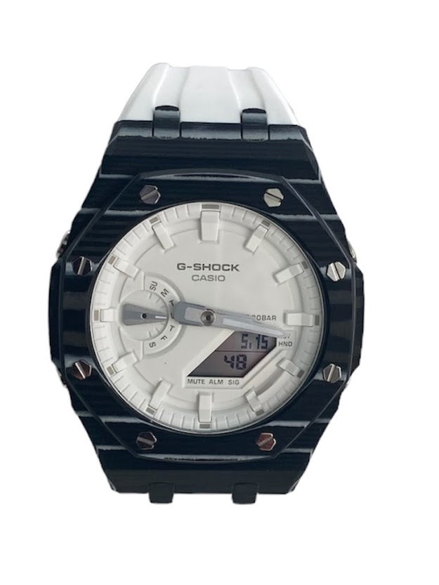 GShock Mod AP Style, Black and White Carbon Case w/ White Band/ White