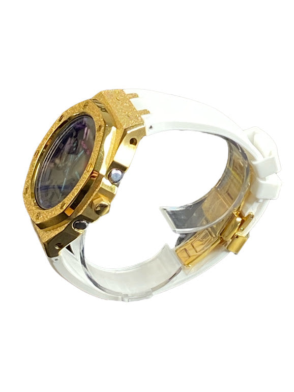 GShock Mod AP Style Gold Emery w/ White Band/ Black Stainless and Blue and Teal Markers