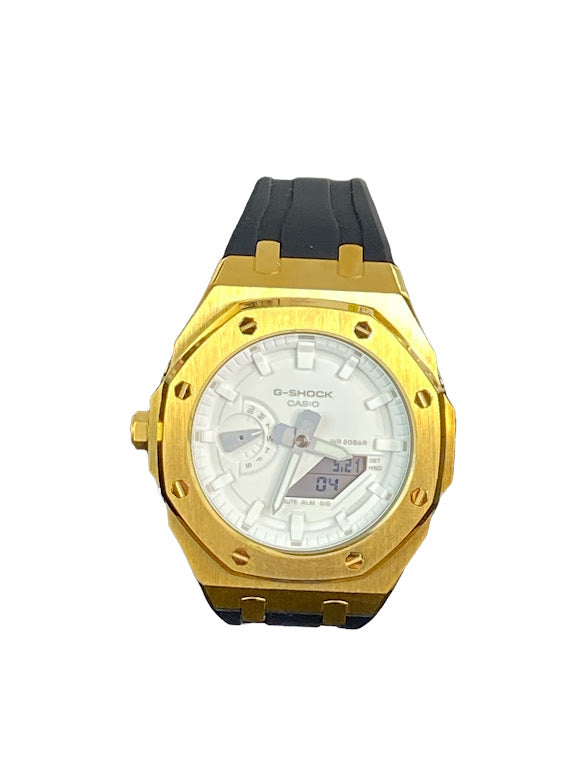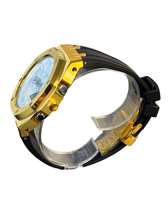 Brand new, AP style GShock Mod, gold case with black and white face.