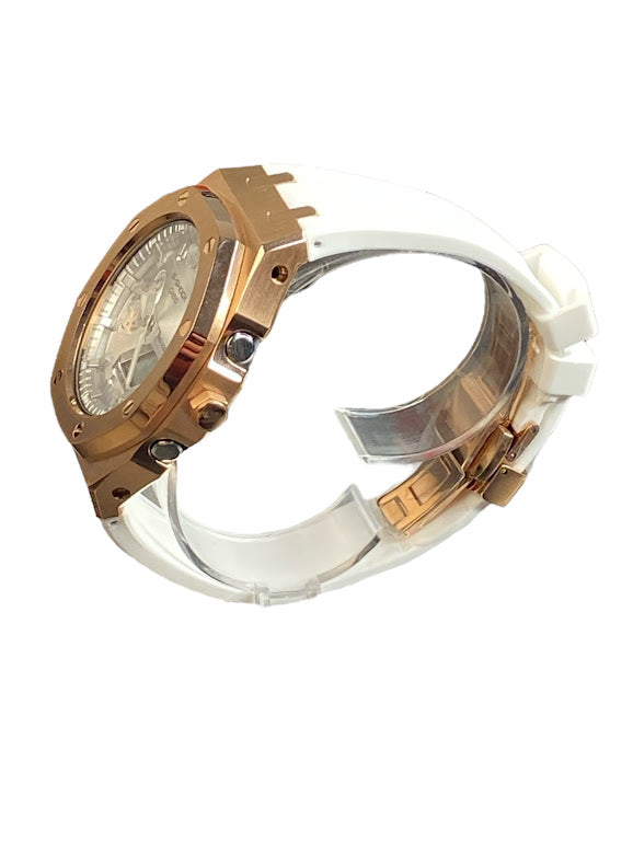 GShock Mod AP Style Rose Gold w/ White Band/ Silver Stainless