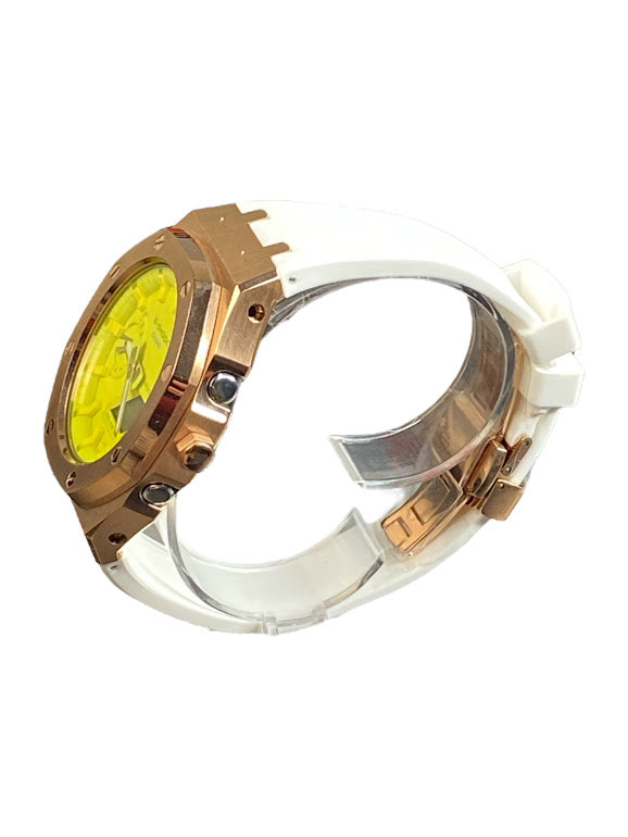 GShock Mod AP Style Rose Gold w/ White Band/ Yellow Stainless