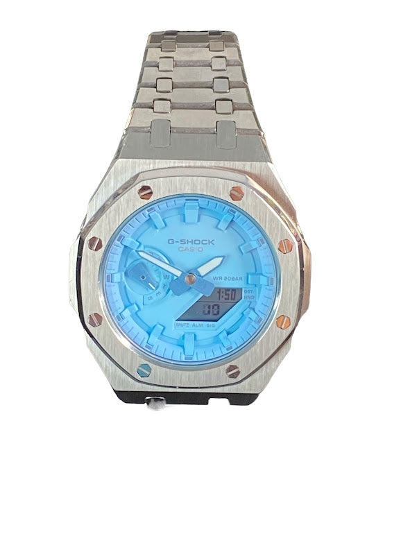 GShock Mod AP Style Silver/ Blue Stainless
