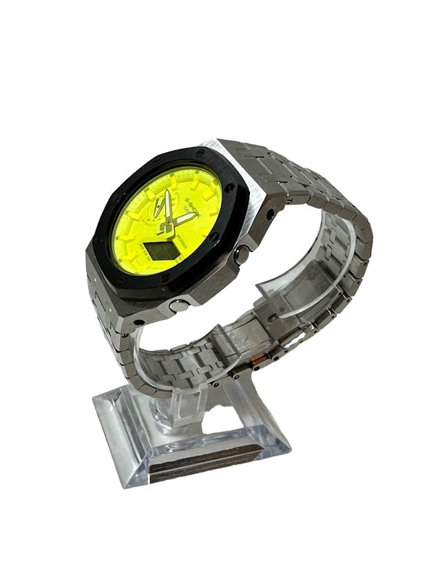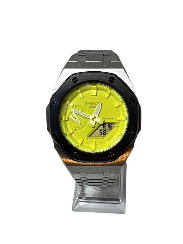 GShock Mod AP Style Silver w/Black Bezel/ Yellow Stainless