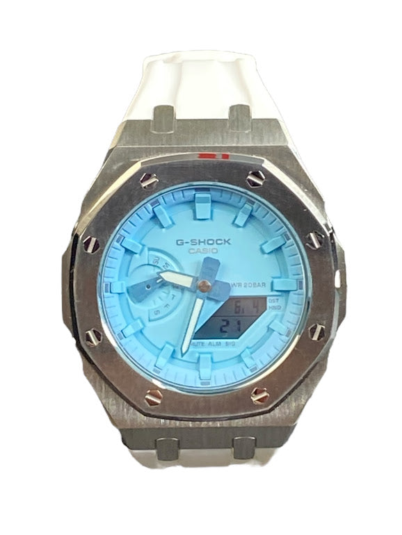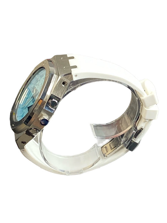GShock Mod AP Style Silver w/ White Band/ Blue Stainless