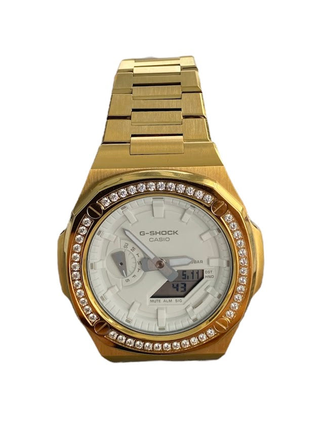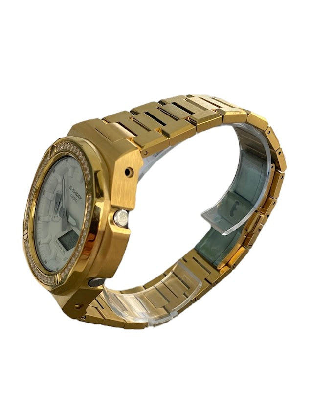GShock Mod PP Style Gold with Crystal Bezel/ White Stainless