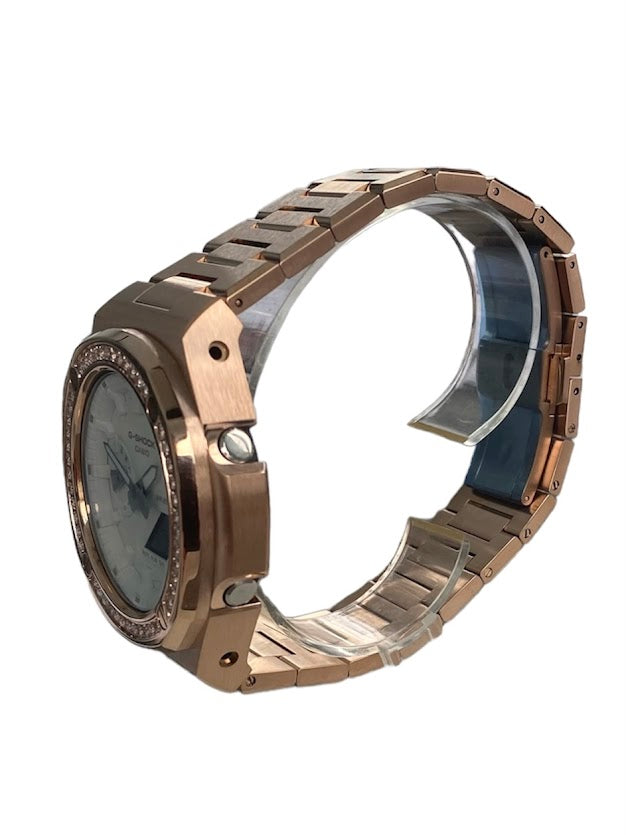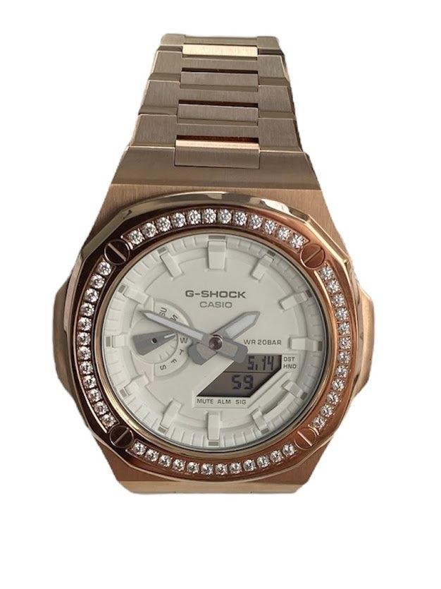 GShock Mod PP Style Rose Gold w/ Crystal Bezel/ White Stainless