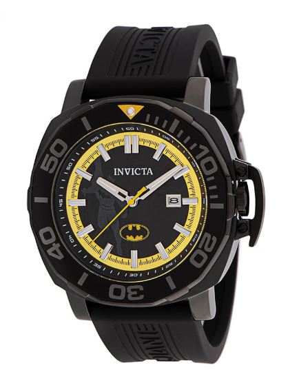 This eye-catching Invicta watch from the DC Comics collection is powered by an accurate Quartz movement, with a black case. Its face is decorated by a , metal dial, and protected by a sturdy Flame Fusion Crystal. A black, silicone band completes this timepiece that can resist water for up to 100 m.