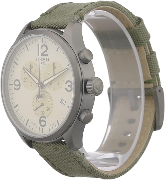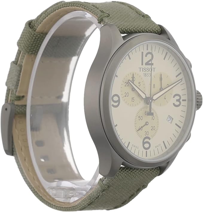 The green fabric strap complements the design perfectly and ensures a secure fit with a pin buckle. Made for the modern man, this watch from the esteemed Tissot brand is truly exceptional. T1166173726700